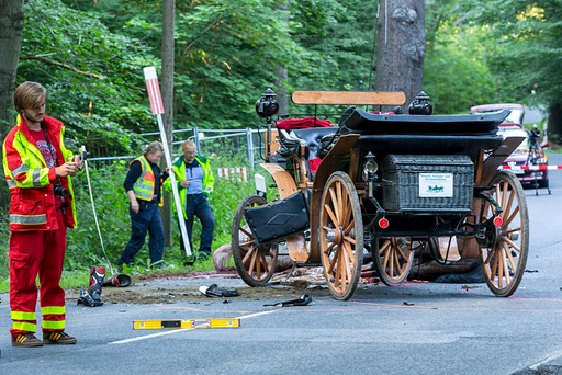 A nyomozás elsődleges adatai szerint a lovaskocsi egy körforgalmon áthaladva az Ostraße úton haladt tovább. A jármű eddig tisztázatlan okból áttért a menetirány szerinti bal oldalra, ahol összeütközött a szemből érkező, Volkswagen Passat típusú személygépkocsival. A jármű először a lovakat érte el, majd a szekérnek ütközött, mely azt követően fel is borult. A lovaskocsi hajtója a baleset következtében súlyos sérülést szenvedett, őt mentőhelikopterrel kellett kórházba szállítani, míg kísérője könnyebben sérült.