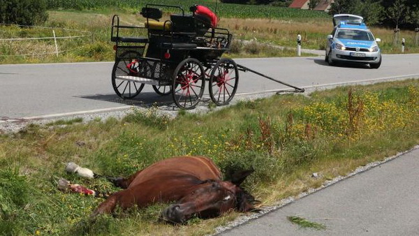 Szászországban az elmúlt évben még a mostaninál is súlyosabb lovaskocsis baleset történt. Egy vasárnap délután, egészen pontosan 2013. augusztus 11-én 16 óra 25 perckor a kedvelt kirándulóhely, a kastélyáról elhíresült Moritzburg közelében egy férfi vezette kék színű Yamaha R1 típusú motorkerékpárját a kastély felől Radeburg irányába. A 26 éves fiatalember versenygépével egy szűk, kanyarokban gazdag erdős szakaszon haladt, amikor egy lovaskocsinak ütközött. A két ló által vontatott történelmi, díszes jármű a baleset előtt az aszfaltozott utat keresztező erdei úton haladt, s egyenesen kívánta útját folytatni, továbbra is az erdőben maradva.